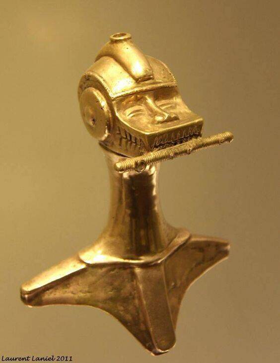 Музей Золота в Боготе, Колумбия, – это не просто хранилище драгоценных артефактов, это портал в мир доколумбовых цивилизаций, где золото было не только символом богатства, но и священным материалом, воплощающим уровень развития древней цивилизации. Среди тысяч ослепительных экспонатов, каждый из которых рассказывает свою уникальную историю, порой встречаются такие, что заставляют остановиться, задуматься и переосмыслить наши представления о древних культурах. Один из таких артефактов – золотая статуэтка, зажимающая зубастым ртом трубчатый предмет с рукояткой, – является ярким примером того, как древние индейцы могли зашифровать в своих произведениях нечто гораздо более глубокое, чем кажется на первый взгляд.