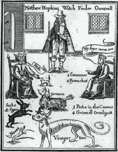 Ведуны и их «духи»-фамильяры на фронтисписе трактата М. Хопкинса, 1647