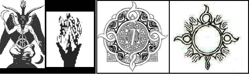 В этом орнаменте довольно просто вырисовывается голова демона, точнее Бафомета. Да и надпись над головой демона довольно символична.