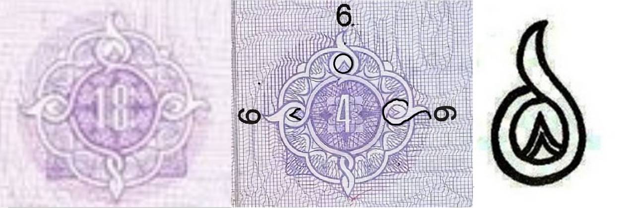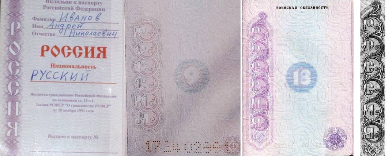 На четных страницах паспорта можно прочитать слово “ЛОБ”, так как там три шестерки перевернуты в виде буквы “Б”, внутри которой видна буква “О”, а в ней расположена буква “Л”.