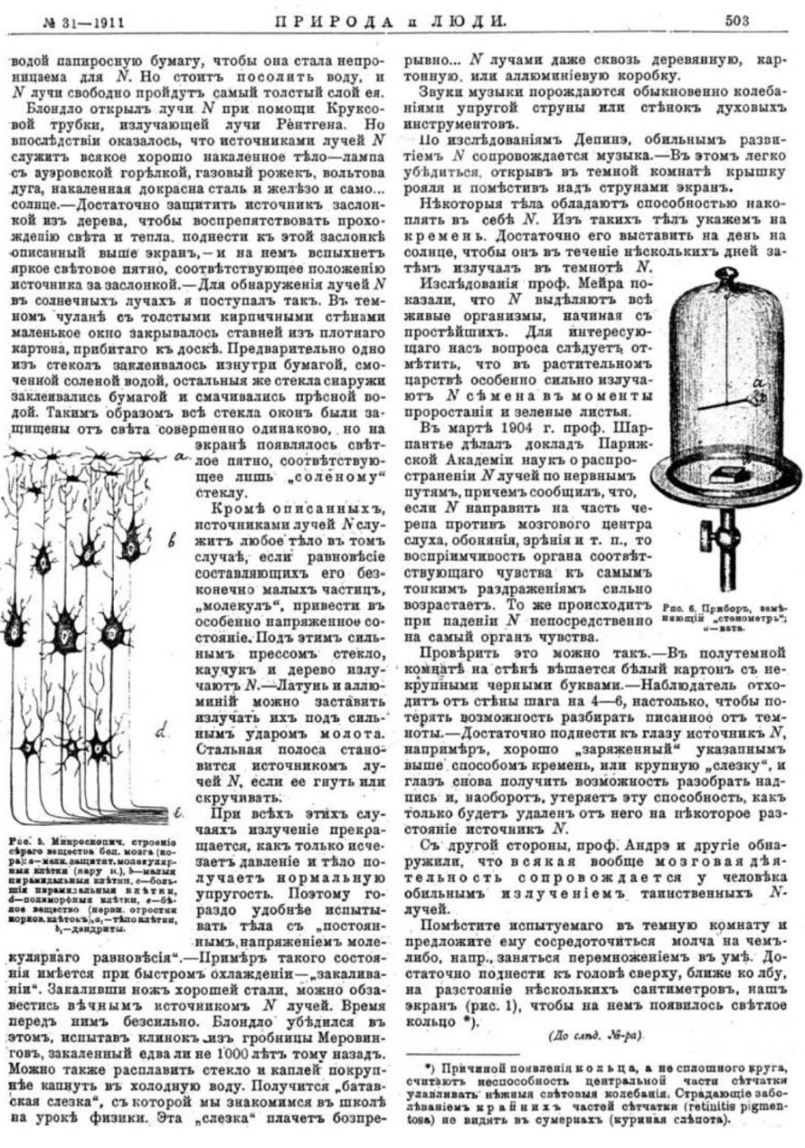 Очерк А. Барченко опыты с мозговыми лучами описанный в журнале «Природа и люди» в 1911 году