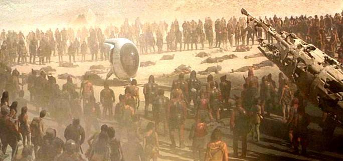 По существу, фильм начинается с того, что все человечество сосредоточено на одном большом острове и живет на обломках разрушенной технической цивилизации. Скажем, это не очень приятно видеть, особенно если вы надеетесь на позитивный образ Ноя.