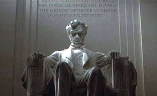 Создатели фильма высказали весьма рискованное утверждение, изобразив обезьяной как Линкольна, сидящего на памятнике, так и полицию.