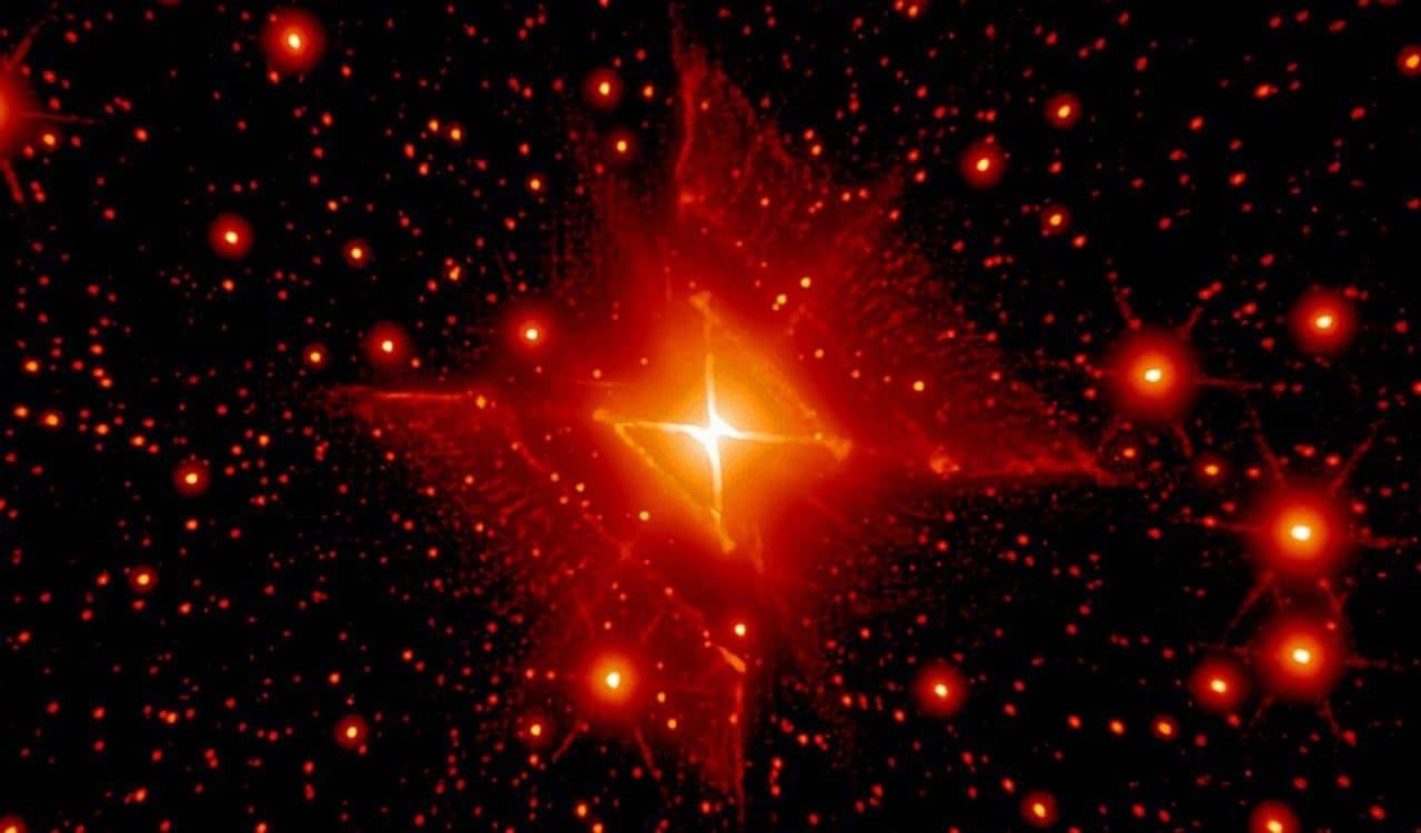 Изображение туманности Красный прямоугольник, окружающей горячую звезду MWC 922. Снимок сделан с помощью инфракрасной адаптивной оптики в обсерваториях Паломар и Кек. Фото: Питер Татхилл/обсерватории Паломар и Кек