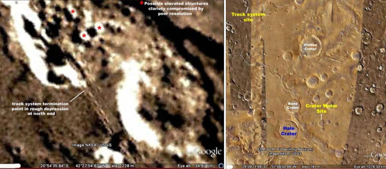 Дорога тянется к кратеру Гейла, в районе которого НАСА планирует высадить свой новый марсоход, предназначенный для поисков воды, а то и жизни. Начинаются «пути» примерно в 900 километрах от него. Скиппер уверяет, что в том кратере, из которого выходят «рельсы», заметны строения. Вокзал? Поселок?