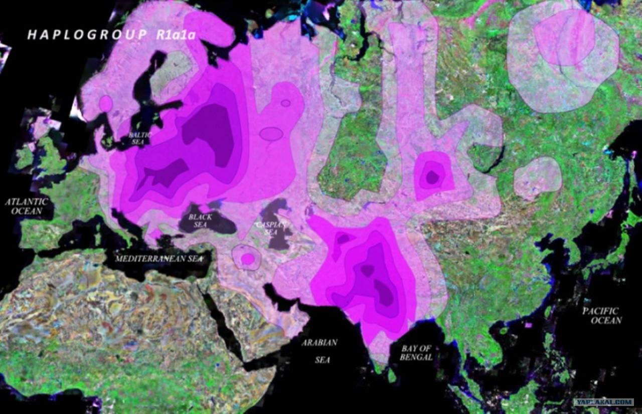 Специалисты по гаплогруппам отмечают, что наиболее распространенная гаплогруппа R1 могла зародиться где-нибудь на территории между Центральной Азией и Русской равниной 25,000-30,000 лет назад. Носителей «мужской» гаплогруппы R1 можно называть ариями (при том, что есть и «женская» митохондриальная гаплогруппа, поэтому расово-генеалогические вариации на самом деле весьма разнообразны). Два основных субклада — R1a и R1b, которые доминируют во всей Европе и западной Евразии, связывают с переселениями после последнего ледникового максимума.