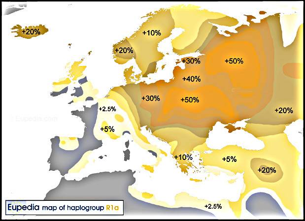 Формирование «более северной» или «самой арийской» гаплогруппы R1a связывают с югом Русской равнины (10-15 тыс. лет назад) и полностью оформившейся к событиям Махабхараты (3102 г. до Р.Х.), упомянутым нами в предыдущей части. Ареал её распространения наиболее широк — от Исландии до Индии. Эта же гаплогруппу считают маркером распространения «курганной культуры», которую большинство исследователей относят к ядру «протоиндоевропейской» — а точнее славяноарийской культуры.