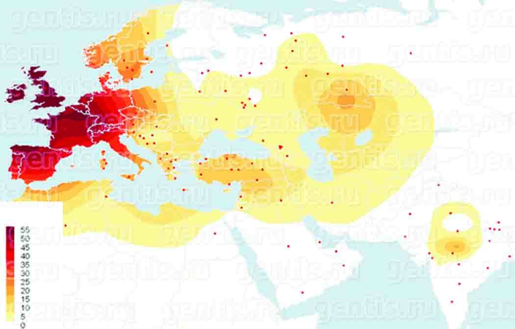 Как мы отмечали выше, наиболее древние люди европейского типа проживали на территории Русской равнины в районе Приочья, 50–40 тыс. лет до н.э. Мы, русские, происходим от носителей гаплогруппы R, от которой пошли многочисленные субклады (подгруппы). Кроме нас, больше всего разновидностей гаплогруппы R обнаруживается среди населения Ср.Азии, Сибири и Индийского субконтинента (одна изолированная подгруппа найдена среди коренного населения северного Камеруна).