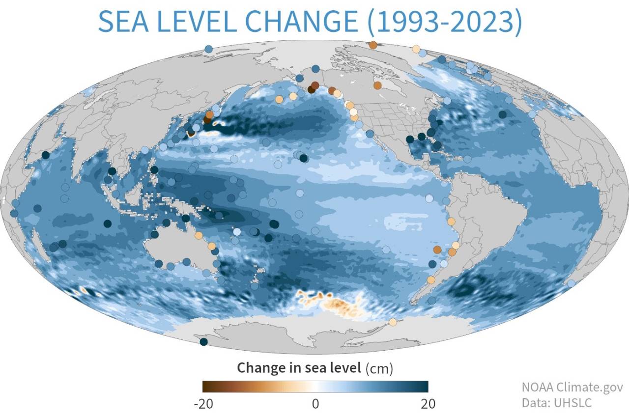Изменение уровня моря с 1993 по 2023 (www.climate.gov/news-features/)