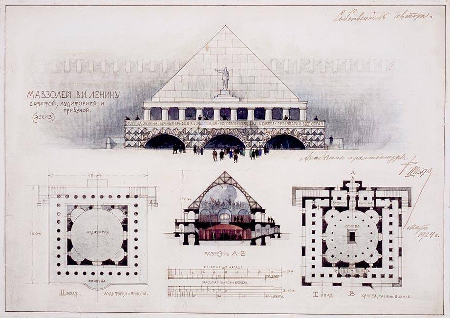 Один из нереализованных проектов Мавзолея Ленина, участвовавших в конкурсе (1924 год). Автор — Фёдор Шехтель