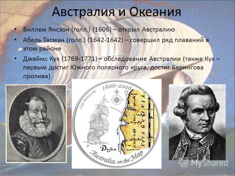 Дело в том, что за 164 года до этого, в 1606 г. на побережье Австралии высадился голландский мореплаватель Виллем Янсзун. Кроме этого, за XVII век ещё 29 голландских мореплавателей исследовали западное и южное побережье Австралии. Этот континент они называли «Новая Голландия». Самые известные из них: Уильям Дампьер (в 1688г.) и Виллем Де Вламинг (в 1696 г.). Есть даже версия, что Австралию открыли португальцы аж в 20-е годы XVI века.