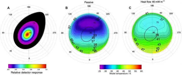 Для того чтобы в океане Энцелада могла развиться жизнь, необходим баланс: океан должен излучать столько же тепла, сколько получает. И команда обнаружила, что северный полюс спутника примерно на 7 градусов теплее, чем мы думали ранее. В сочетании с теплом, исходящим от южного полюса, это почти точно соответствует общему значению: ледяной панцирь толще вокруг экватора, поэтому тепло уходит на полюсы.