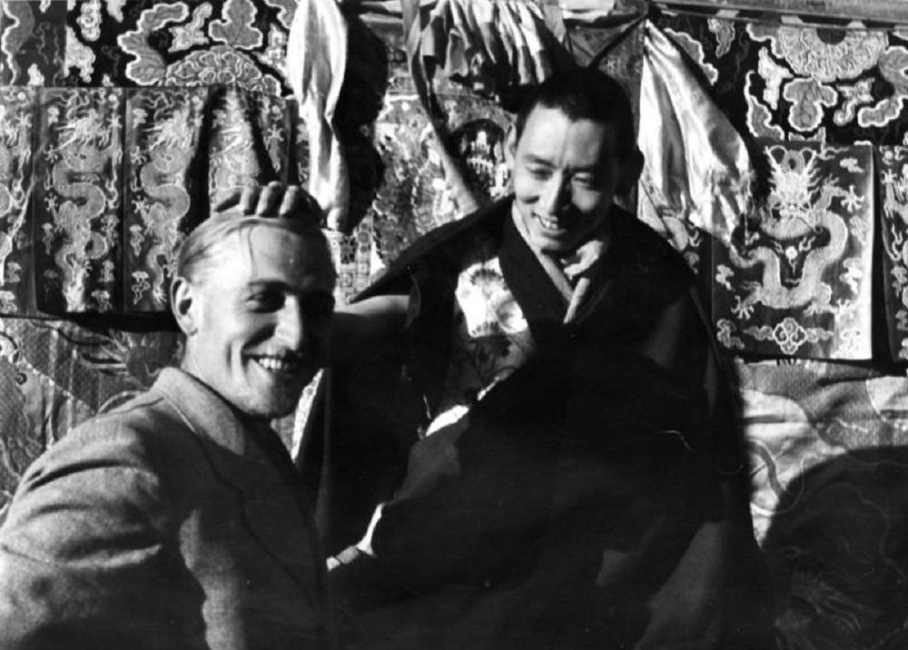 Регент Тибета, Ретинг Панч (справа), дающий благословение нацистскому офицеру СС Бруно Бегеру. Фото Эрнста Шефера/ Bundesarchiv, Bild 135-S-13-116/CC-BY-SA 3.0. PD-CCA-Share Alike 3.0 Germany. Wikimedia Commons.