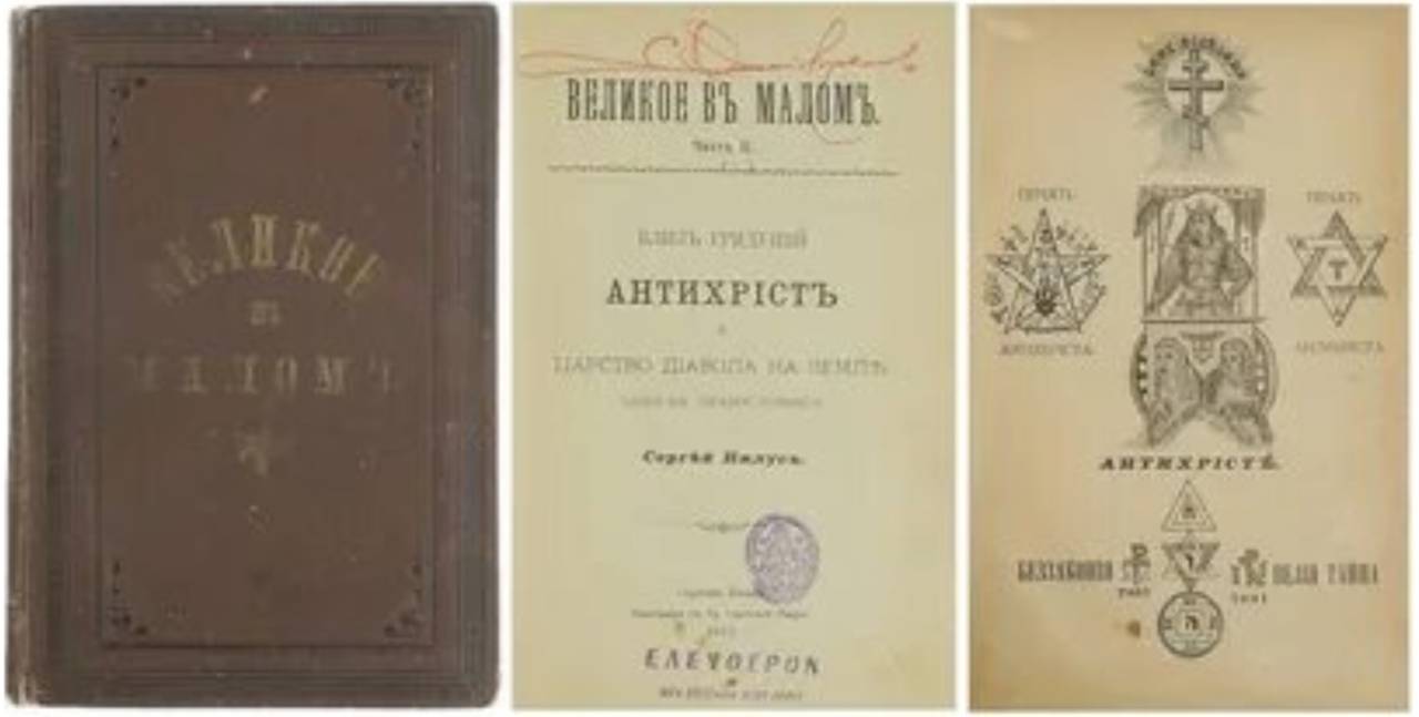 Во 2-е издание книги «Великое в малом», посвященной Иоанну Кронштадтскому, Нилус включил свою обширную работу «Антихрист как близкая политическая возможность». Поэтому книга вышла под названием «Великое в малом и Антихрист как близкая политическая возможность», Царское Село, 1905г.
