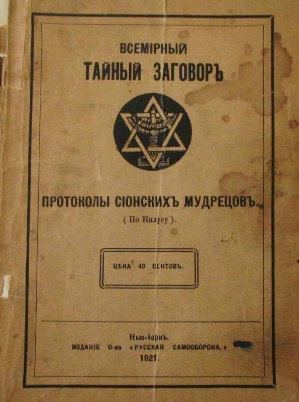 По выражению Нилуса, «Протоколы собраний Сионских мудрецов» содержат планы подчинения всего христианского мирa под пяту «избранного» богоборствующего народа. Этот народ-международ сеет ненависть, революции, растлевает самодостаточные нации.