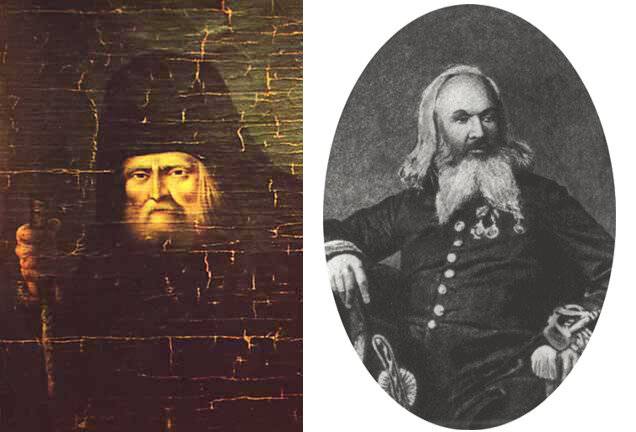 Слева: Серафим Саровский (1754 – 1833), великий подвижник Русской церкви и один из наиболее почитаемых монахов в её истории