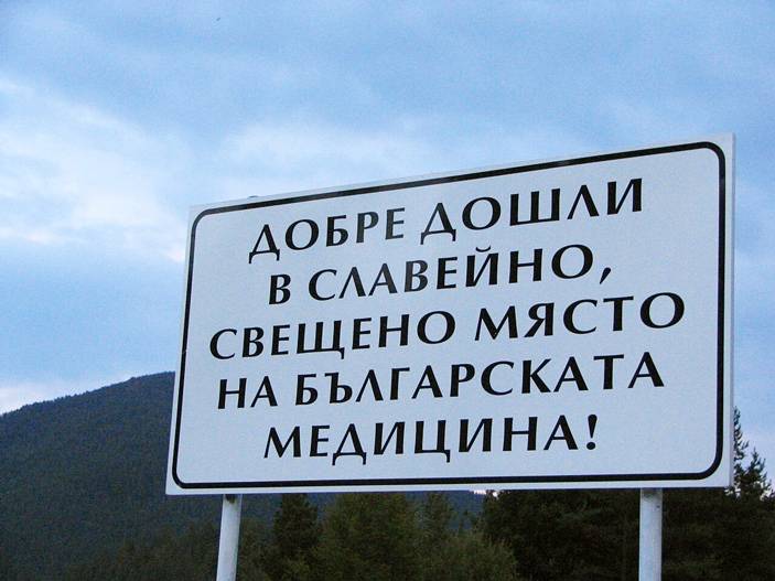 Рис. 1. Эта табличка в Болгарии хорошо демонстрирует отличительные особенности болгарского языка: отсутствие падежей и обилие предлогов (как в английском) в сочетании с присутствием постпозитивных артиклей. В свою очередь, эти особенности стали следствием взаимопроникновения балканских языков за счет их длительного контакта. Похожие процессы, как выяснили исследователи, происходят со всеми языками земного шара при условии, что они «контактируют» с другими языками.