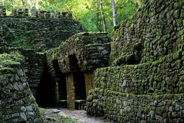 Вид на вход в древний лабиринт майя в Тонине, у подножия Акрополя, откуда можно увидеть три арочных дверных проёма, ведущих в сооружение. (Фото: ©Marco M. Vigato)