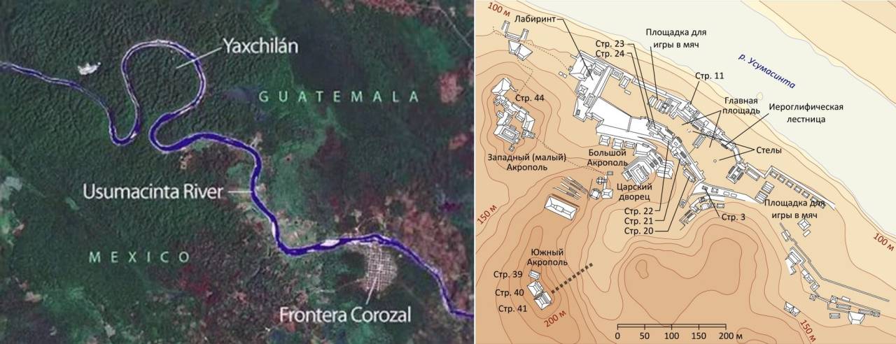 Древний город майя Яшчилан расположен на мексиканском берегу могучей реки Усумасинта, напротив города-соперника Пьедрас-Неграс, примерно в 35 километрах ниже по течению на территории Гватемалы. Даже сегодня добраться до Яшчилана можно только на лодке по реке. Вдали от многолюдных Паленке и других городов майя руины Яшчилана сегодня находятся в том же состоянии, в каком их впервые описали Модсли и Малер в начале XX века, на пике «золотого века» археологических исследований.