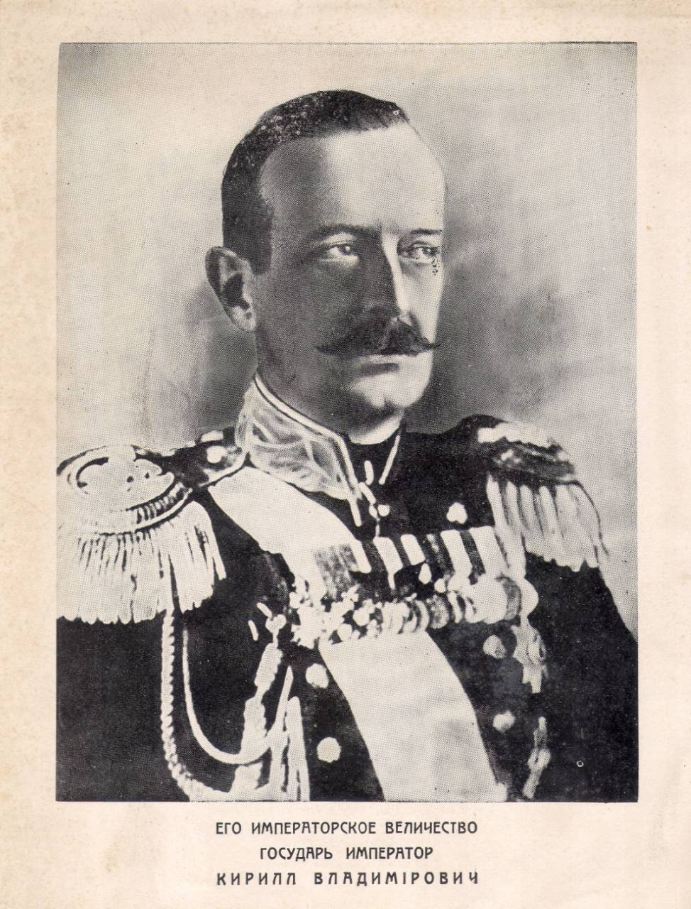 Великий князь Кирилл Владимирович (1876 — 1938), второй сын великого князя Владимира Александровича, третьего сына императора Александра II; двоюродный брат Николая II.
