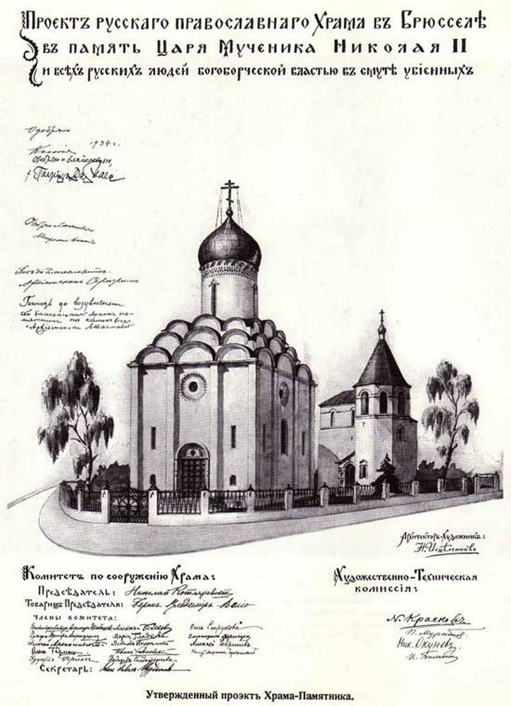 Видимо, произошла путаница, которую можно объяснить следующим образом, основываясь на информации, любезно предоставленной нам графиней М.Н. Апраксиной (ее отец Н.М. Котляревский был инициатором и затем председателем Комитета по сооружению Храма-Памятника, заложенного в начале 1936 г. и освященного в 1950 г.).