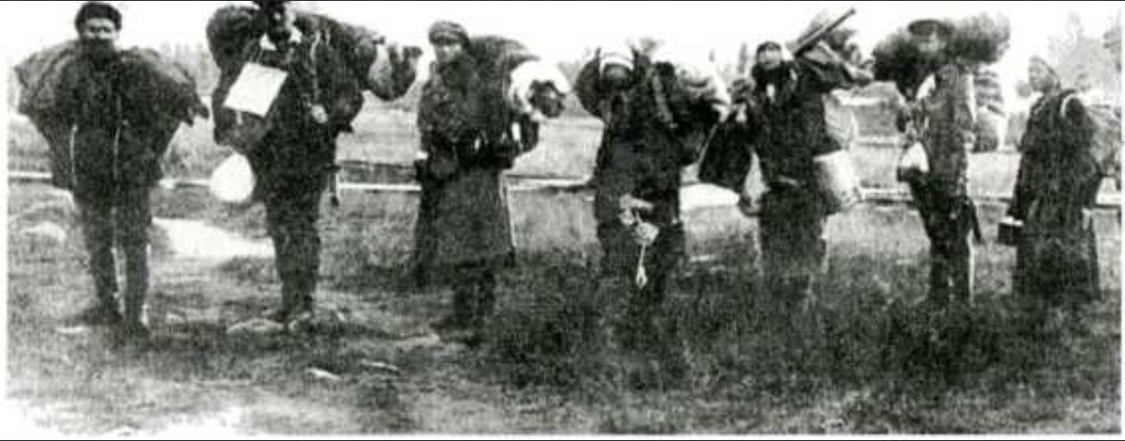 Справа налево: проводник, А. В. Барченко, Н. Барченко, Л. Н. Шишелова-Маркова, Ю. В. Струтинская. Архив семьи Кондиайнов