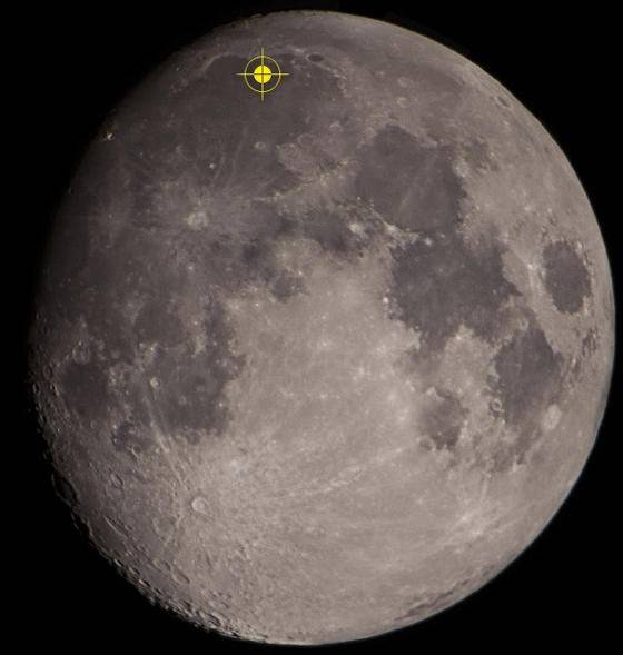 А теперь важная предыстория. Если смотреть с Земли, поверхность Луны состоит из двух основных областей. Более светлая область, называемая «возвышенностью», чётко отделена от более тёмных областей, называемых «морями». Чанъэ-3 приземлился на северной поверхности одного из этих значительно более тёмных регионов («Море дождей» — цель желтого цвета, см. внизу), что подчёркивает глубокую загадочность вопроса: «Откуда взялись эти удивительно яркие скалы, лежащие прямо перед ним?»