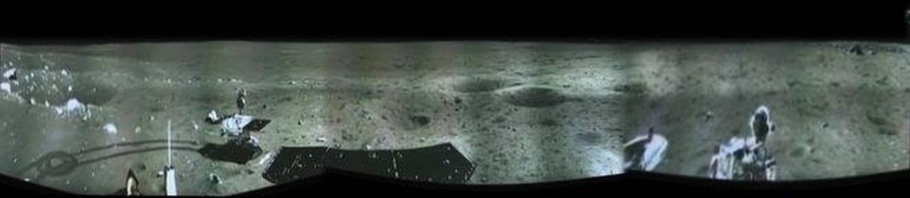Одна важная подсказка, подтверждающая этот сценарий, всплыла в тот же день — 20 декабря — как официальное объявление о «неожиданном, раннем возобновлении Юту «нормальных» операций на поверхности Луны «: официальная публикация первой панорамы лунной поверхности, снятой «ландшафтной/топографической камерой» «Чанъэ-3» — снова впервые опубликовано на китайском телевидении.