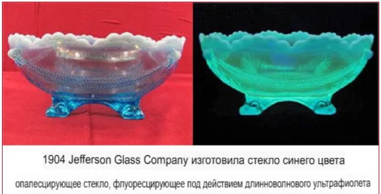 Обычные опалесцирующие стекла, напротив, содержат случайно расположенные внутренние «рассеиватели размером со свет» — и, таким образом, создают общий вид «голубого неба» (создаваемый внутренним, так называемым «рассеянием Тиндаля / Рэлея«), если смотреть под большинством углов; однако то же самое стекло приобретает определенный «желтоватый вид», если смотреть против прямого (или отраженного) источника света (см ниже), поскольку «синие» спектральные компоненты были рассеяны из оставшегося пропускаемого света….