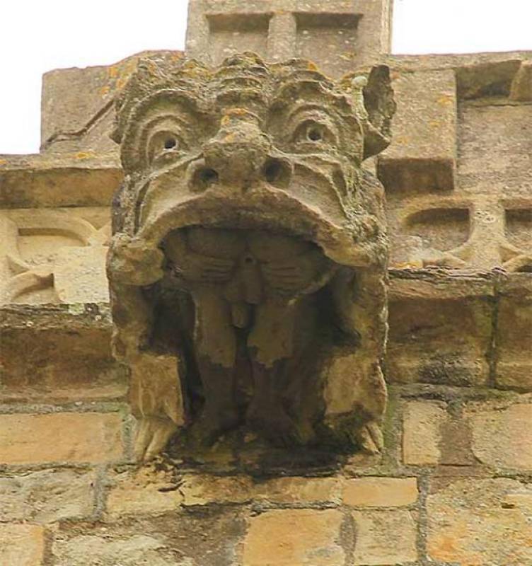 ХХХ мужская фигура в пасти горгульи в церкви 12 века Святого Михаила Архангела в Лакстоне, Ноттингемшир, которая, согласно Sheelangig.org, сочетает в себе “мотив эксгибициониста и пожирателя грешников”. (htcRichardCroft)