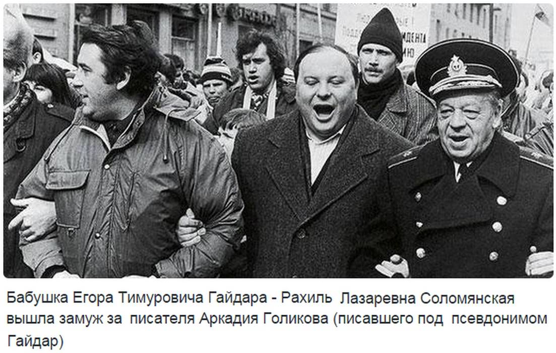 Тимур Аркадьевич Гайдар (первоначально носил фамилию матери Соломянский; 1926 — 1999), пасынок Аркадия Гайдара, советский и российский журналист, писатель, контр-адмирал запаса (на фото справа)