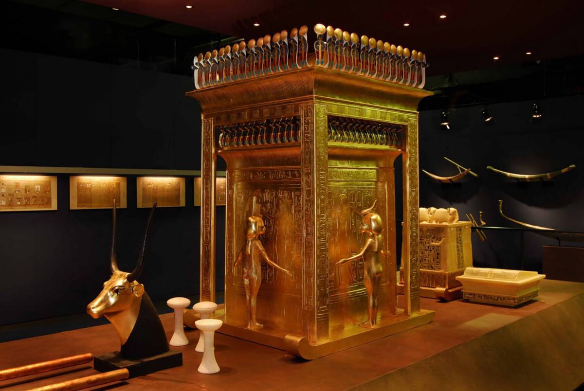 Ковчег Тутанхамона. Здесь хранились сосуды с его внутренностями. Украшен кобрами и статуями богинь: Исиды, Нефтиды, Нейт и Селкит