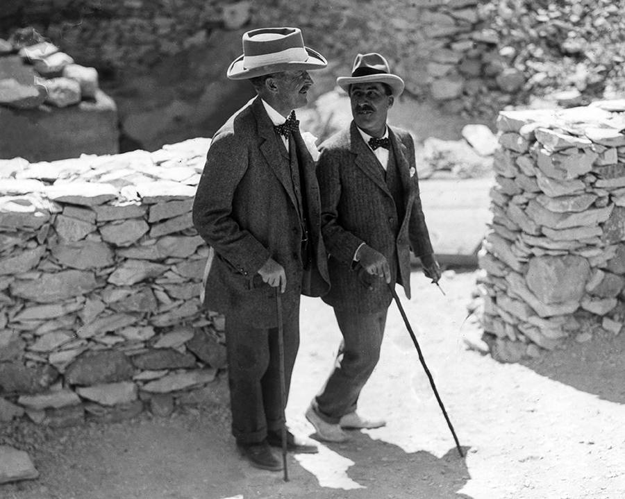Английский египтолог Говард Картер (справа) со своим коллегой по исследованиям, спонсором лордом Карнарвоном на раскопках Долины царей, Египет, 1922 год